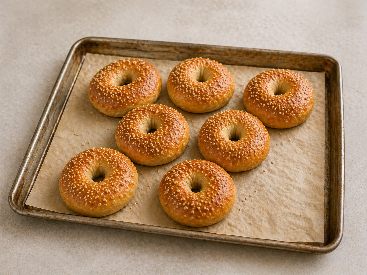 20–25 Minuten backen, bis die Bagels leicht goldbraun sind.
